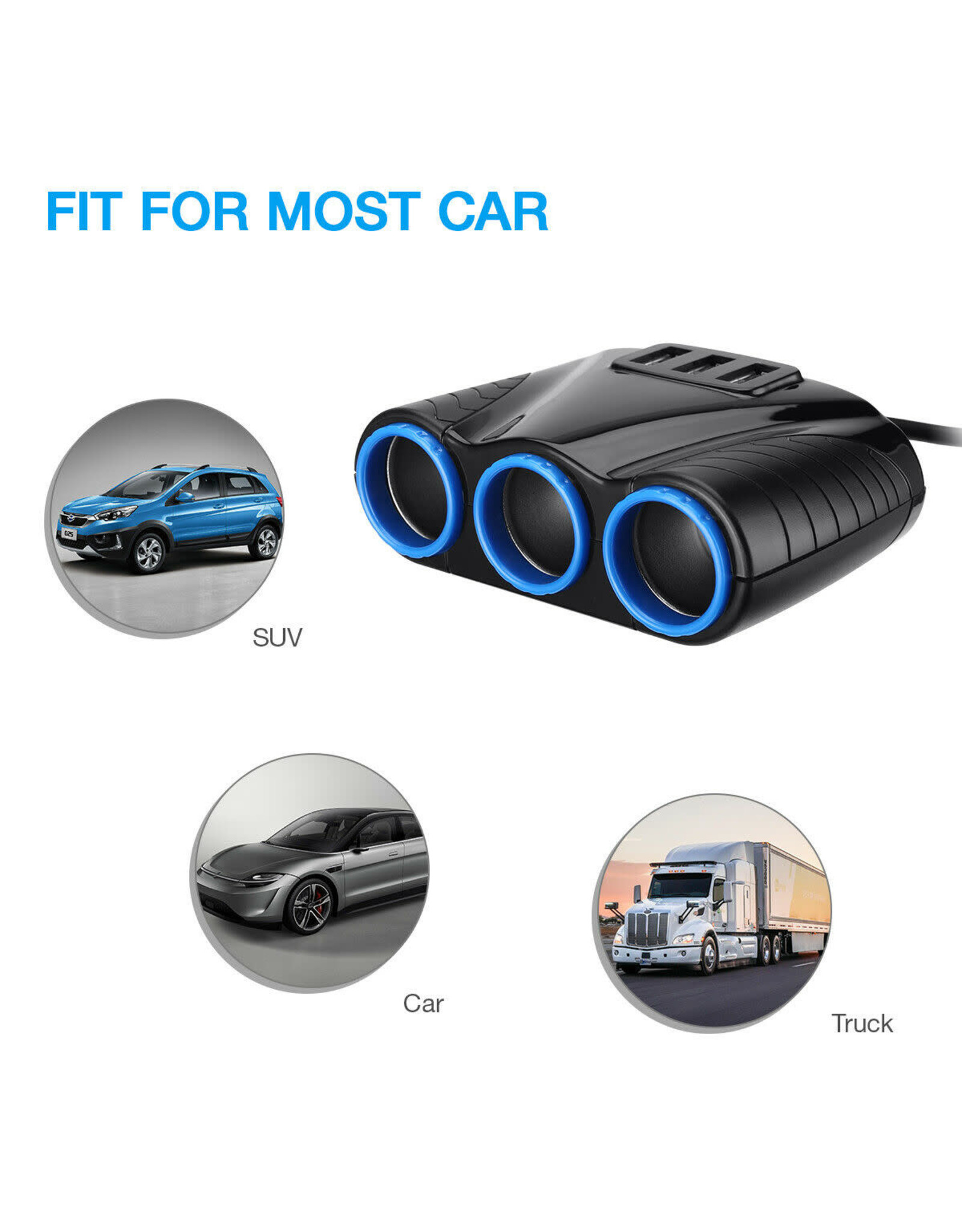 Arcturus Products Cigarette Lighter Socket 3 USB Charger Splitter 12V Outlet Power Adapter Car